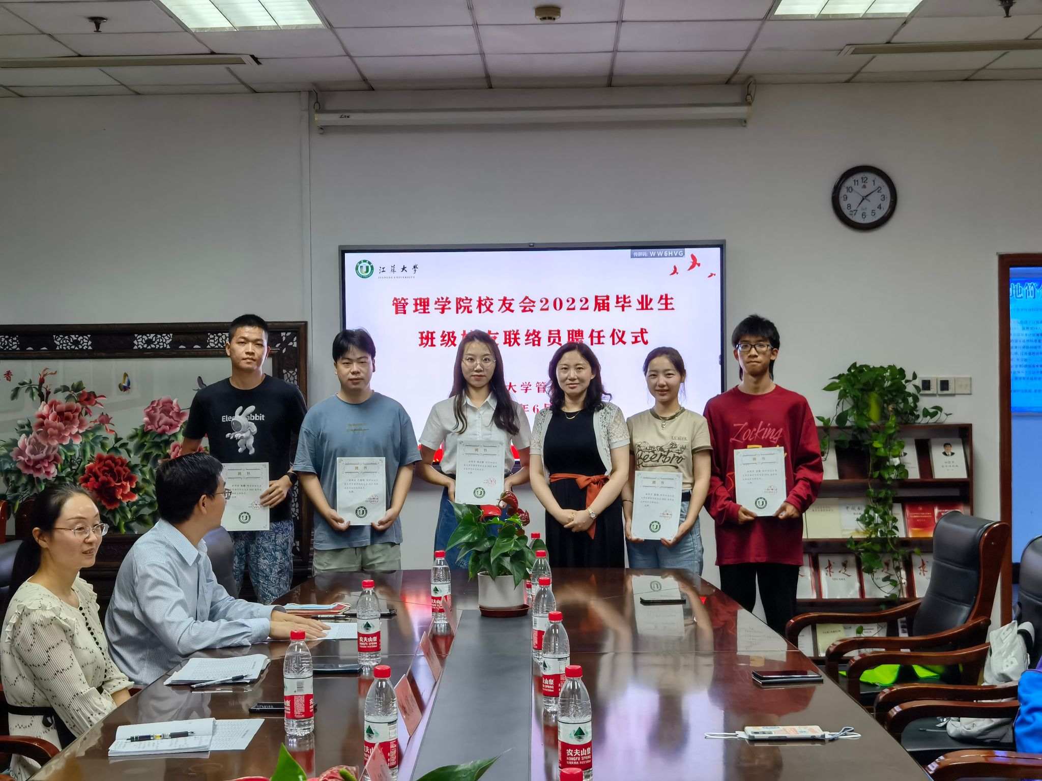 6月17日,开云电子体育_开云(中国)在三江楼1411会议室举行2022届毕业生班级校友联络员聘任仪式。开云电子体育_开云(中国)校友会会长、院党委书记王丽敏,开云电子体育_开云(中国)优秀校友、镇江市工信局党委委员、副局长朱明珠,开云电子体育_开云(中国)校友会副秘书长、院党委副书记、副院长欧阳国庆,校友周红光及2022届毕业生班级校友联络员参加仪式。仪式由2022届毕业生辅导员冯中超主持。