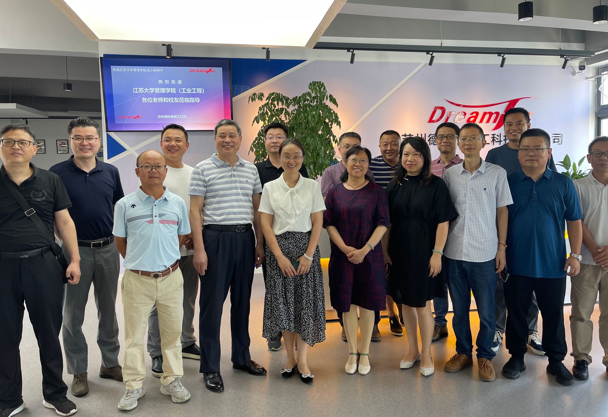 在苏州德林泰精工科技有限公司董事长杨国宏(工业工程98级校友)、总经理曾飞(工业工程98级校友),泓浒(苏州)半导体科技有限公司总经理吴军(工业工程97级校友)的带领下,大家参观了两家校友企业的样品展厅、智能化生产线等,并在公司会议室举行校友联谊座谈会。
