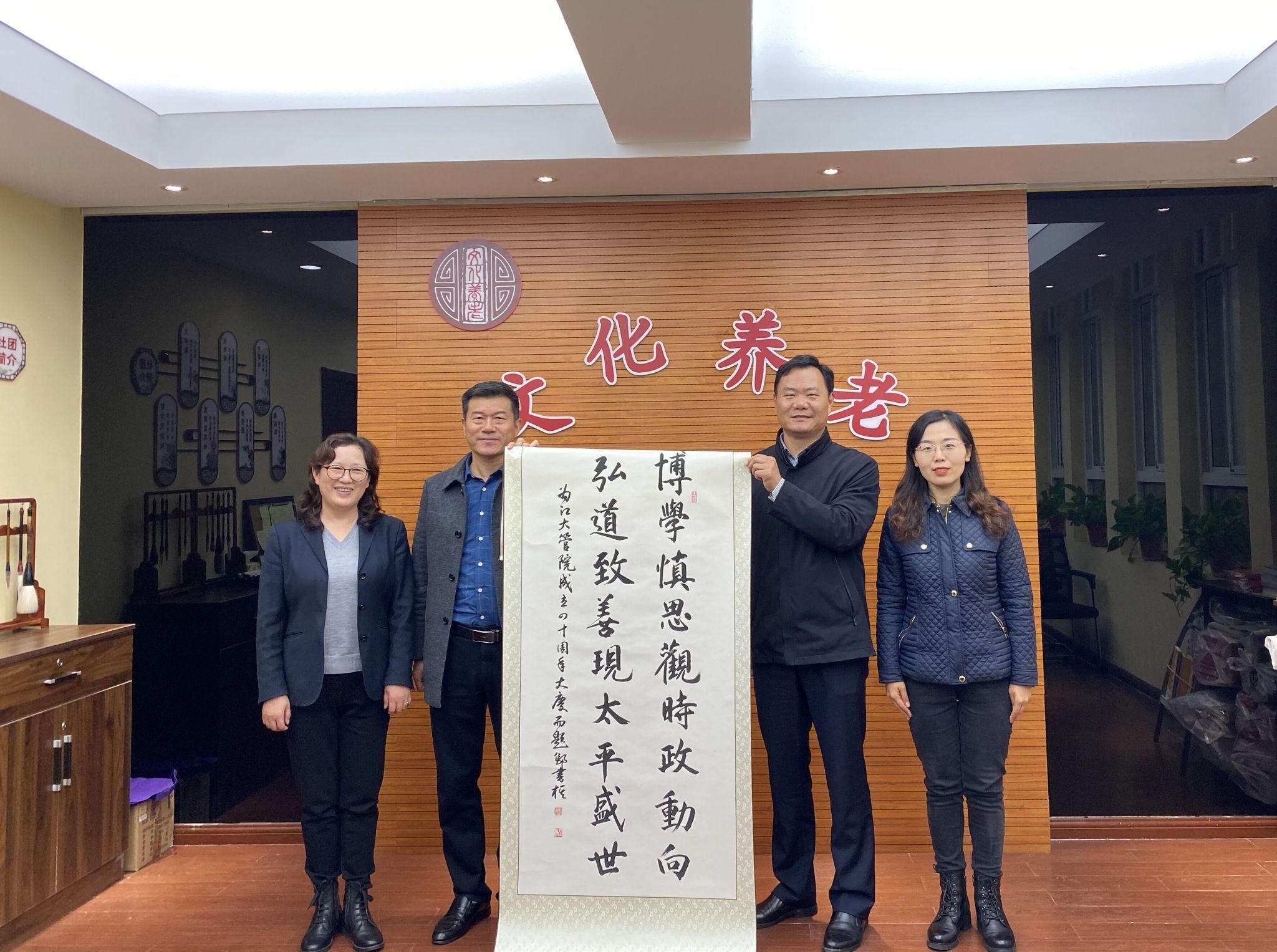 11月25日,由开云电子体育_开云(中国)主办的“喜迎二十大,永远跟党走,奋进新征程”院庆书画作品捐赠仪式在镇江市国资委行业老干部管理服务办公室2楼举行。开云电子体育_开云(中国)党委副书记欧阳国庆、团委书记周存君、辅导员杨旭以及镇江市国资委行业老干部管理服务办公室主任、党委书记钱忠勤、镇江市国资委行业老干部办“文化养老”社团党支部书记、社团团长、“银发生辉”志愿服务中队队长刘培勤参加了捐赠仪式。镇江市国资委行业老干部管理服务办公室主任、党委书记钱忠勤向我院捐赠了书画作品。